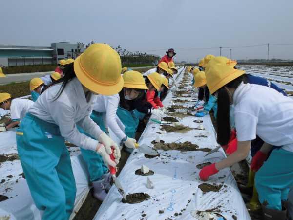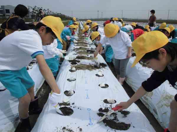 3年生が丸いもの植え付けをしました。「大きくなあれ!おいしくなあれ!まあるくなあれ!」と願いを込めて丁寧にうえました。どんな丸いもができるのか、今から収穫が楽しみです。