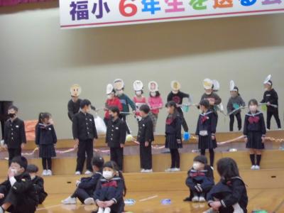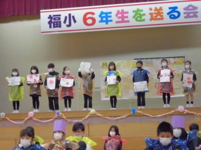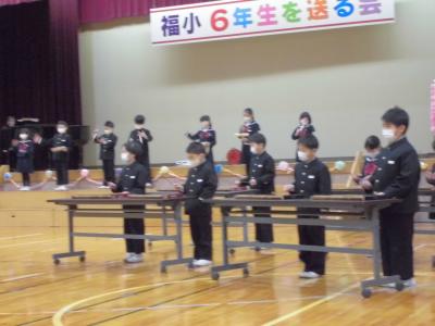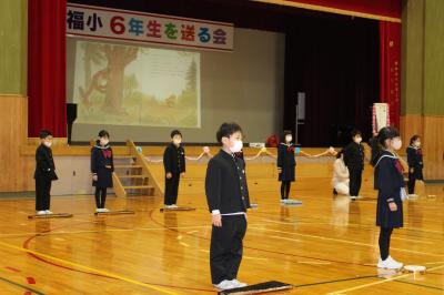 2月17日(金)に「6年生を送る会」が行われました。今年度は保護者・地域サポーターの皆様にもお越しいただき、子どもたちはとても張り切っていました。お世話になった6年生に感謝を伝え、楽しんでもらおうと、どの学年も練習を積んで一生懸命発表する姿に成長を感じました。特に、中心となって準備や運営を務めた5年生の主体性とアイデアと団結力が素晴らしかったです。保護者・地域サポーターの方からも、「心温まるすてきな会でした。」「開催できて本当に良かったですね。」とお言葉をかけていただき、感謝の気持ちでいっぱいです。次は、卒業式! 福岡っ子のさらなる頑張りを期待しています。