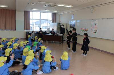 2月28日(火)3・4限目、1年生が生活科の時間に「新1年生を迎える会」を行いました。コロナ禍のため、2年間は集合型ではなく、お手紙やビデオを届けていましたが、今年度は招待できることになり、1年生はとても張り切っていました。劇や校歌を発表したあと、学校巡り、クイズやゲーム、プレゼント渡しなどで、新1年生と交流しました。楽しんでもらおうと頑張る1年生の姿がたくさん見られました。元気いっぱいの新1年生の皆さん、入学式でお待ちしています。