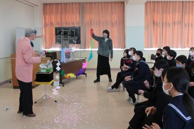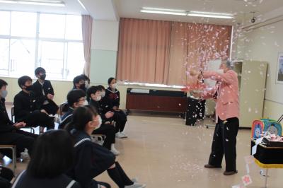 3月8日(水)、卒業まであと1週間となりました。コロナ禍でいろいろな制限がある中、持ち前の明るさと元気で、福岡小学校を引っ張てくれた6年生。本当にありがとう。この日の学級活動の時間に、根上校区にお住いのマジシャン「トーマス南野さん」が、マジックを披露してくださいました。お世話になったCS委員さんや支援員さんと一緒に、ドキドキ・わくわくしながらショーやトークを満喫しました。「すごい!」「どうして?」「もう1回!」という声があちこちで聞かれ、拍手が沸き起こりました。南野さん、素敵なショーをありがとうございました。