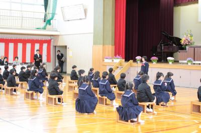 3月15日(水)、最高のお天気に恵まれたこの日、能美市 南教育委員、北村PTA会長、保護者の皆様にご臨席を賜り、在校生(1~3年生は教室でライブ配信)と教職員の見守る中、令和4年度卒業証書授与式が挙行されました。卒業生の凛とした姿、感謝とあらたな決意を伝える姿、そして、在校生のあたたかく気持ちのこもった別れの言葉や拍手がとても立派でした。卒業生の皆さん、これまで本当にありがとう。お別れは寂しいですが、これからも皆さんを応援し続けます。ご卒業おめでとうございます。