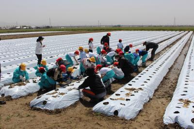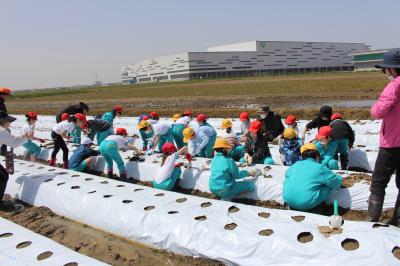 3年生は、総合的な学習の時間に「地域の人・もの」をテーマに探究的な学習を行います。本日(13日)は、3・4限目に、福岡町の岡元農場さんにご指導をいただき、畑にて「加賀丸いも」の植え付け体験をしました。子どもたちは、「大きくなあれ・おいしくなあれ・まあるくなあれ!」と願いながら種芋を上手に植え付け、早くも収穫が待ちどおしい様子でした。みんなも丸いもも元気に育ちますように!岡元農場の皆さん、貴重な体験学習をありがとうございます。これからもよろしくお願いします。