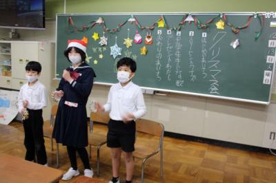 13日(火)2限目に、根上地区3小中学校の特別支援学級の「合同クリスマス会」がオンラインで開催されました。本校のつくし学級の児童3名は、初めての3校オンライン交流で緊張した様子も見られましたが、サンタさんが登場し、中学校の先輩が楽しく司会進行をしてくださったおかげで、緊張がほぐれました。和やかな雰囲気の中、各校で協力して準備してきた出し物などを披露し合い楽しんだあとは、一緒にクリスマスソングを歌ったり合奏したり・・・最後はお待ちかねのプレゼント交換をして会を閉じました。画面を通しながらも、笑顔あふれるあたたかい交流会となりました。また、ぜひ交流したいですね。