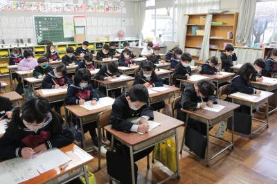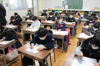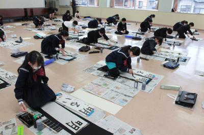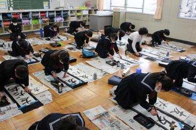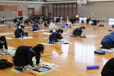 1月10日(火)3学期始業式で、新年を祝い、3学期のめざす福岡っ子の姿を共有した後、恒例の「書初め大会」が行われました。児童は素晴らしい集中力で、これまでの練習の成果を発揮しました。そうして、お互いの頑張りをたたえ、ますます字が上達することを願い、会を閉じました。新学期初日、「いいね!」がたくさん見つかりました。