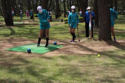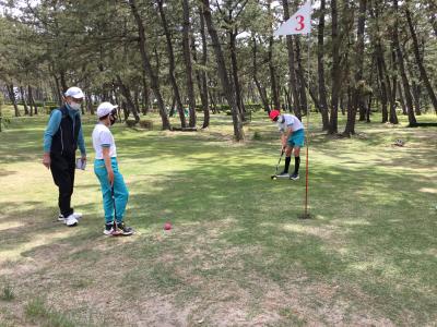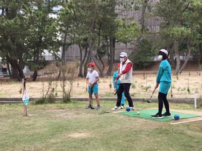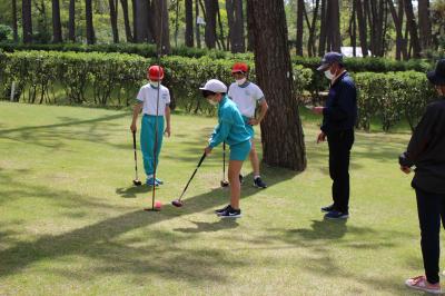 5月17日(火)5.6時間目に、6年生が「SDGsの視点から能美市を見つめよう」のテーマ学習(総合的な学習の時間)において、能美市パークゴルフ協会の皆様のご協力のもと、パークゴルフ体験学習を行いました。松林の中の広々とした美しいコースとして有名な「根上パーゴルフ場」に初めて来たという児童、そして初めてプレーするという児童がほとんど。協会の方々が、各グループに入って丁寧にご指導してくださり、子どもたちはみるみるコツをつかみ、時間を忘れてプレーに熱中していました。6年生は、今回の体験学習を通して能美市のことをますます好きになり、持続可能な社会をつくる一人としての自覚を高めたのではないでしょうか。先日の5年生に引き続き、温かいお言葉とご指導をいただきました協会の皆様への感謝の気持ちを忘れず、SDGsの学習をさらに深めていきます。ありがとうございました。