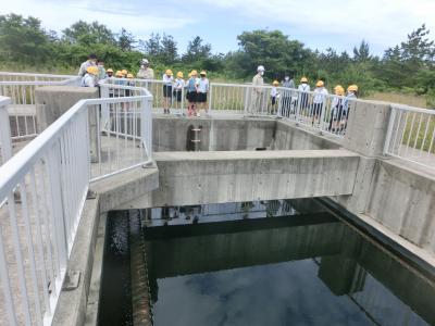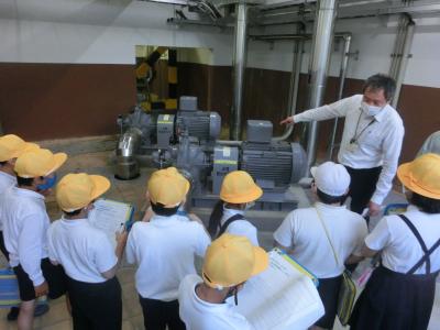 4年生が、社会科の学習で、上下水道の施設見学に行きました。上水道については,「吉原水道管理センター」において,能美市の上水道の仕組みを教えていただいたり、各家庭へ水を送る大きなポンプや消毒の機械など見学したりしました。下水道については,「翠ヶ丘浄化センター」において,下水がきれいになる仕組みを教えていただいたり、微生物を活性化させるエアレーションタンクや、きれいになって海へ流れる水路などを見学したりしました。