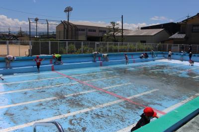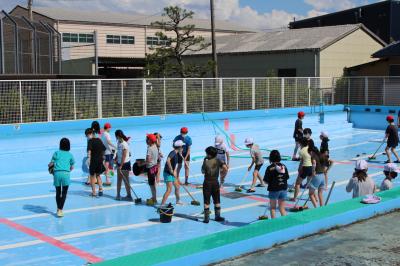 6月9日(木)、5・6年生が、全校のみんなのためにプール掃除に取り組みました。それぞれの学年で、めあてをはじめ担当場所・仕事分担・手順・目標時間・注意点などを確認した後、いよいよ掃除開始。自分の仕事を責任をもって果たそうとする姿、自分の仕事が終わったら進んで友達の手伝いをする姿、ピカピカになるまで粘り強く頑張る姿、素敵な姿がたくさん見られました。プール掃除大作戦、成功!5・6年生、ありがとう。きれいになったプールで、水泳の学習をする日が待ち遠しいですね。安全に気をつけて楽しく学習をしましょう。