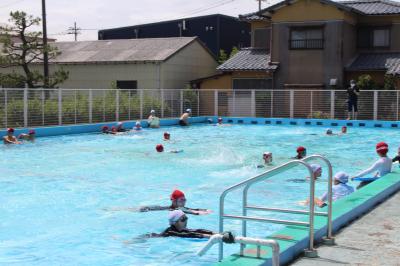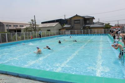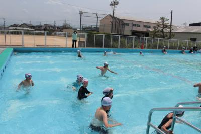6月15日(水)に、全校放送によるプール開きを行い、以降、天候の良い日にプール学習に取り組んでいます。各学級の授業には、担任の他に2名の職員も支援等に加わり、感染症対策と熱中症対策を講じながら学習を進めます。子どもたちは、暑い日差しを浴びながら、ます「水に慣れること」から始め、とても楽しそうな表情を見せています。短い期間ですが、各自めあてをしっかりもって、貴重な時間を安全に有意義に過ごしましょう。