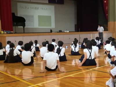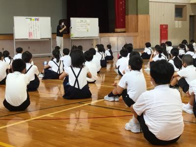 昨日20日(水)、1学期終業式を体育館で感染症対策をとりながら行いました。初めに、教務担当の先生が式や集会に臨む姿勢や心構えなどを伝え、その後、校長先生・生徒指導担当の先生・児童会運営委員代表児童の話を通して、福岡っ子の1学期の成長や頑張り・良さをみんなで確かめ合いました。また、平和な社会をつくるために「やさしさと思いやり」の種をまいて育てること、夏休みは自由な時間が長くなる分、自分で考えて行動する(判断し選択する)ことがとても大切であること、そして、児童会の目標「目標に向かって、あきらめずに挑戦し続ける」ことについて共有し、校歌を歌って式を閉じました。