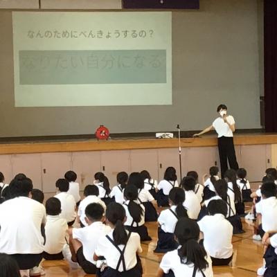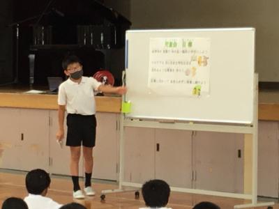 始業式では、校長講話(楽しく充実した2学期を過ごすために)のあと、研究主任が、学習面について話しました。今後、AIがますます発達し、社会も大きく変化していきますが、みんなが「なりたい自分」になるには、「考えを持ち、伝え深める力」をつけることが大切であり、そのための2学期の授業でのめあてを確かめ合いました。