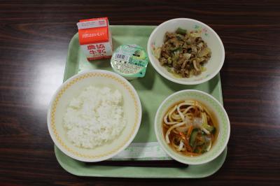 そして、本日は給食がスタート。献立は、「ご飯・牛乳・高野豆腐と野菜のみそ炒め・冷やしうどん汁・メロンシャーベット」です。2学期も、感謝していただきます。