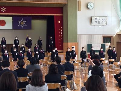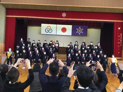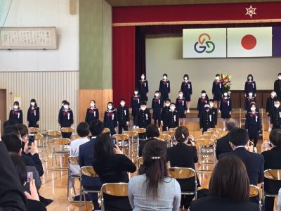 4月6日(水)うららかな春の日、令和4年度の入学式が挙行されました。今年度の新入生は34名。会場では、PTA会長様、保護者の皆様、6年生、教職員が、そして教室では、リモート参加の2~6年生が、新しく仲間入りした”福岡っ子”の入学を祝いました。呼名での元気いっぱいの返事や堂々とした姿が、とても素晴らしかったです。いよいよ、児童190名と教職員27名を乗せた「福岡丸」の出航です!。知恵と力と心を合わせて進んでいきますので、保護者・地域の皆様、あたたかいご支援をよろしくお願いします。