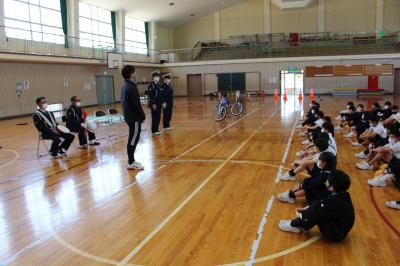 4月28日(木)の3.4時間目に体育館において、能美警察署交通課及び交通推進隊の方々にご指導をいただき、3年生の自転車教室を開催しました。3年生は、大切な命を守るため、署員の方のお話をしっかり聞き、真剣に実習をしました。自転車は大変便利な乗り物ですが、自転車に乗る際は車の仲間であるということを決して忘れず、交通ルールや約束を守って、安全運転をしましょう。また、福岡小学校のみんなで、学校でも地域でもお互いに声をかけ合い、交通安全に気をつけていきましょう。上田自転車商会様、ご協力をありがとうございました。