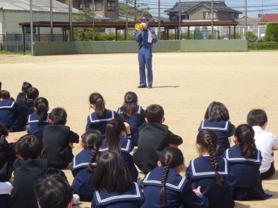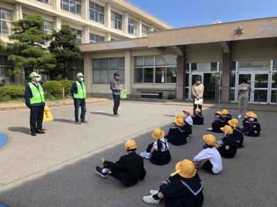 5月10日(火)の1,2時間目に、1年生の交通教室「路上歩行実習」が行われました。この実習は、毎年地域の方々にお手伝いをいただいて、道路の安全な歩行や横断の仕方について学習しています。青空の下、1年生は、出店さん、森田さん、若村さん、CSDの橋本さんにご指導を受けながら一生懸命実習しました。学んだことをいかし、交通安全に気をつけて生活します。地域の皆様、お忙しい中、ご来校いただきありがとうございました。
