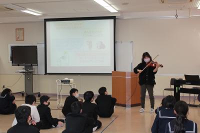 2月7日(月)の5限目に、6年生が、本校のスクールカウンセラーの中川 文先生をお迎えし、「自分も相手も大切にする伝え方」について学びました。中川先生は、月2回程来校されていますが、今回は卒業を控えた6年生に、気持ちよく生きるための大切なルールを中心に、キャラクター等を用いながらわかりやくすお話してくださり、6年生は、あらためて自分や自分たちのコミュニケーションについて考え、学び合っていました。残りわずかな小学校生活と、これからの出会いにいかしてくれることでしょう。授業の最後には、中川先生のバイオリンの素敵な演奏も聴かせていただき、心が温まりました。