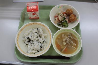 24日(月)学校が再開しました。校内に、子どもの元気な声が聞こえます。さて、今年の全国給食週間(1月24日から1月30日)にあわせて、本校でも24日(月)から28日(金)まで、給食週間の取組を行います。取組内容は ⓵美化・給食委員会のお知らせビデオの視聴(全校) ②調理員さんへの感謝の手紙(1・2・3年) ③給食川柳づくり(4.5年生) ④献立作り(6年生)です。④において、優秀な献立として2名の児童が考案した献立が選ばれ、そのうちの一つが本日の給食の献立に採用されました。テーマは「皆が笑顔になれる給食」、献立名は「さけの竜田揚げ・ほうれん草ともやしののりずあえ・まる芋の味噌汁・ふりかけ」です。考える人や作る人の思いが込められた給食に感謝し、美味しくいただきました。