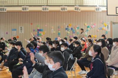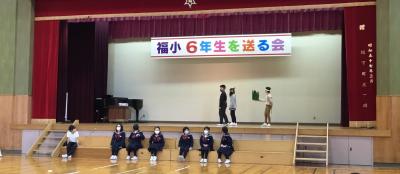 2月18日(金)「6年生を送る会」が、本校体育館で二部に分かれて行われました。緊張しながらも、感謝の気持ちを伝えようと頑張る姿にとても感動しました。あたたかさと笑顔があふれるすてきな会でしたね。次は「卒業式」に向けて、心ひとつにがんばりましょう!