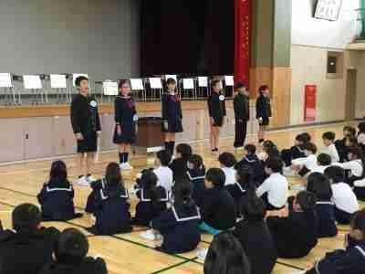 10月27日、後期の学級役員・委員会の役員を任命しました。任命式ではどの子も「はい!」と張りのある返事で、責任をもって役に臨む意気込みが感じられました。その後、児童会目標の3つの笑顔「できた笑顔・いっしょに笑顔・ありがとうの笑顔」をもっといっぱいにするために、各委員長からそれぞれの委員会での取り組みについて話しがありました。どの子も最後まで集中して聞き、「全校で頑張っていこう」と気持ちが一つになった良い集会でした。