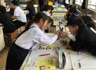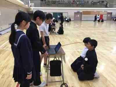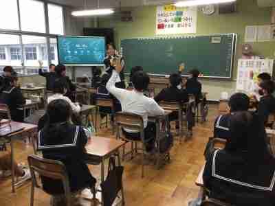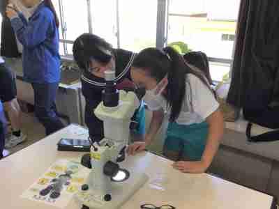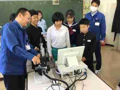 村田製作所の方々による出前理科授業で、6年生が「ミクロの世界」を体験しました。子どもたちは、電子顕微鏡の映像によるクイズでミクロの世界を学んだり、身の回りにあるものを顕微鏡で観察したりして、普段見ることのできない世界を楽しんでいました。