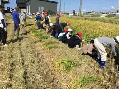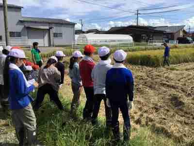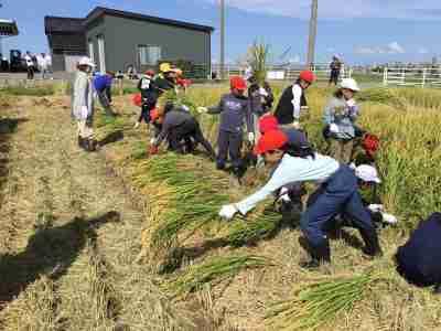 5年生が、稲刈りを行いました。一束ずつ丁寧に刈りとった稲をコンバインまで運び脱穀します。お米になったのを見たときは、思わず拍手が上がりました。私たちが毎日食べているお米が、どのようにして作られているのか体験を通して知ることができました。様々なことを教えてくださった岡元農場の皆様、ありがとうございました。