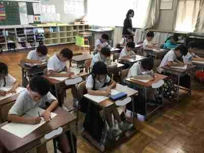 2年:硬筆コンクールに向け、一文字ずつ丁寧に文字を書きます。