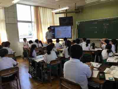1・2年生がJAISTの留学生と交流会を持ちました。「色」を英語だけでなく、いろんな国の言葉で表現し、様々な言語に親しみました。最後にみんなで行ったカラービンゴは大盛り上がりでしたね。