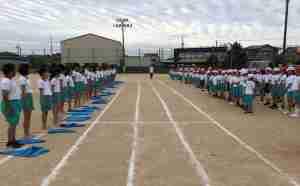 運動会に向けて、朝の応援練習がはじまりました。みんなの心を一つにして、エールを覚えたり、ウェーブのタイミングを合わせたりしています。学校中に元気な声が響きわたっています!