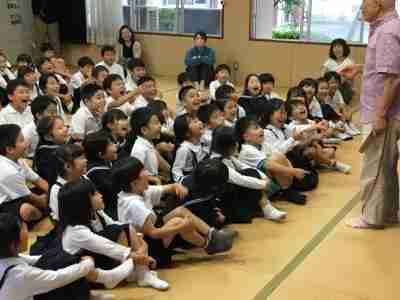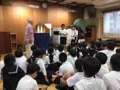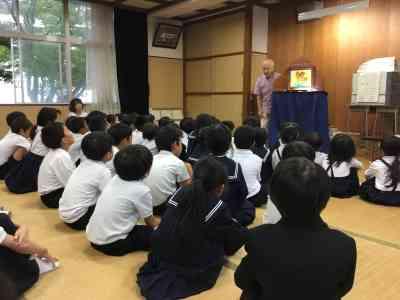 低学年対象にのまりん劇場が開かれました。野間先生の紙芝居と楽しい歌とトークに、笑いありドキドキありの、あっという間の45分間でした。最後に代表児童からお礼のお手紙を渡しました。野間先生、来年も待っています!