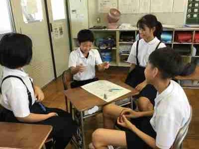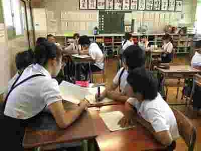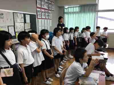 3年:夏休み作品展の鑑賞。友達の作品の良いところを見つけます。