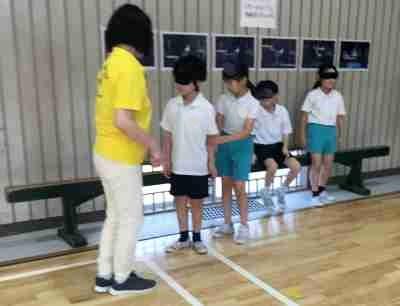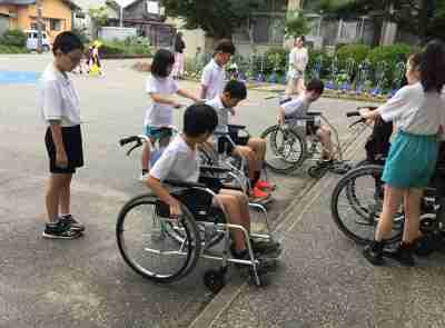 チーム20の方の協力を得て「車いす体験」と「アイマスク体験」を行いました。ちょっとした段差でも通れなくなったり、つまづいたりしてとても困ることに気づきましたね。みんながすごしやすい社会にするために、何が必要か考えていきたいです。