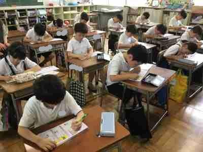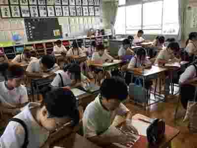 今日は夏休みの全校登校日でした。友達とおしゃべりしたり、図書室の本を返したり、宿題を集めたり、先生のお話を聞いたりして楽しい時間を過ごしましたね。先生たちも、皆さんの元気な姿を見ることができうれしかったです。夏休みもあと10日ほどとなりましたが、健康に気を付けて過ごしてください。9月1日にまっていますね。