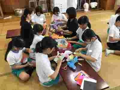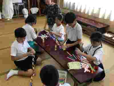 CSさんから七夕の笹が届いたので、早速みんなで七夕飾りを作りました。輪飾りやちょうちんなど、きれいな飾りができました。