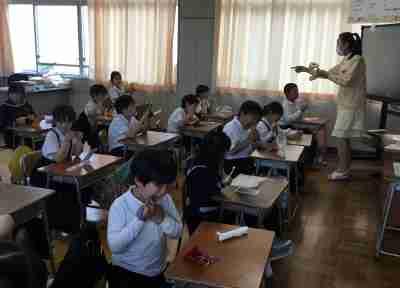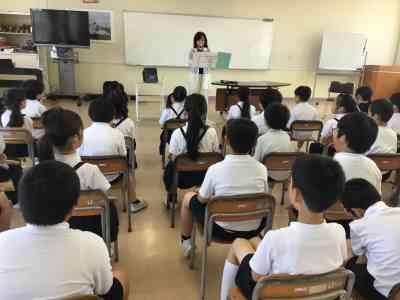 6月4日からの「歯の衛生週間」に向けて、歯科衛生士さんをお招きして「虫歯予防」や「上手な歯の磨き方」の指導をしていただきました。歯を大切にして、ずっと自分の歯で食事をして健康にすごしたいですね。高学年は29日に授業があります。
