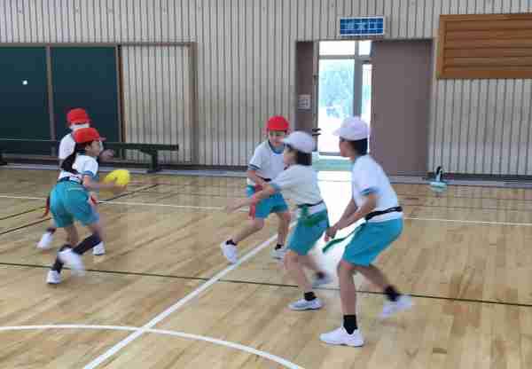 今年度も鈴木先生に来ていただき、タグラクビーの授業を行っています。相手の動きをよく見て、ディフェンスをかわしながらボールを運びます。みんないい動きをしています。