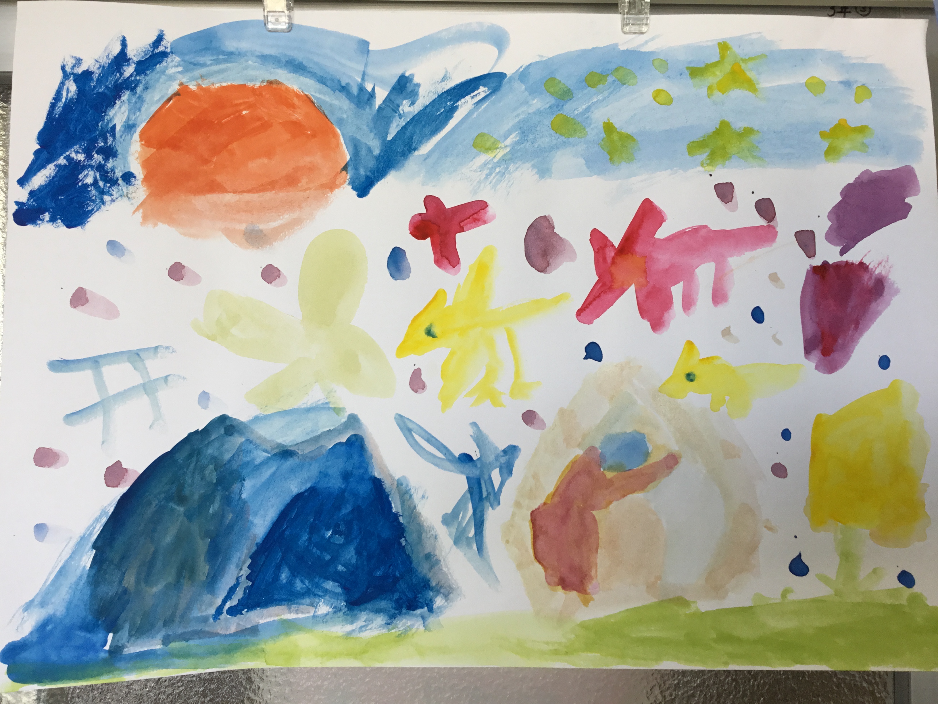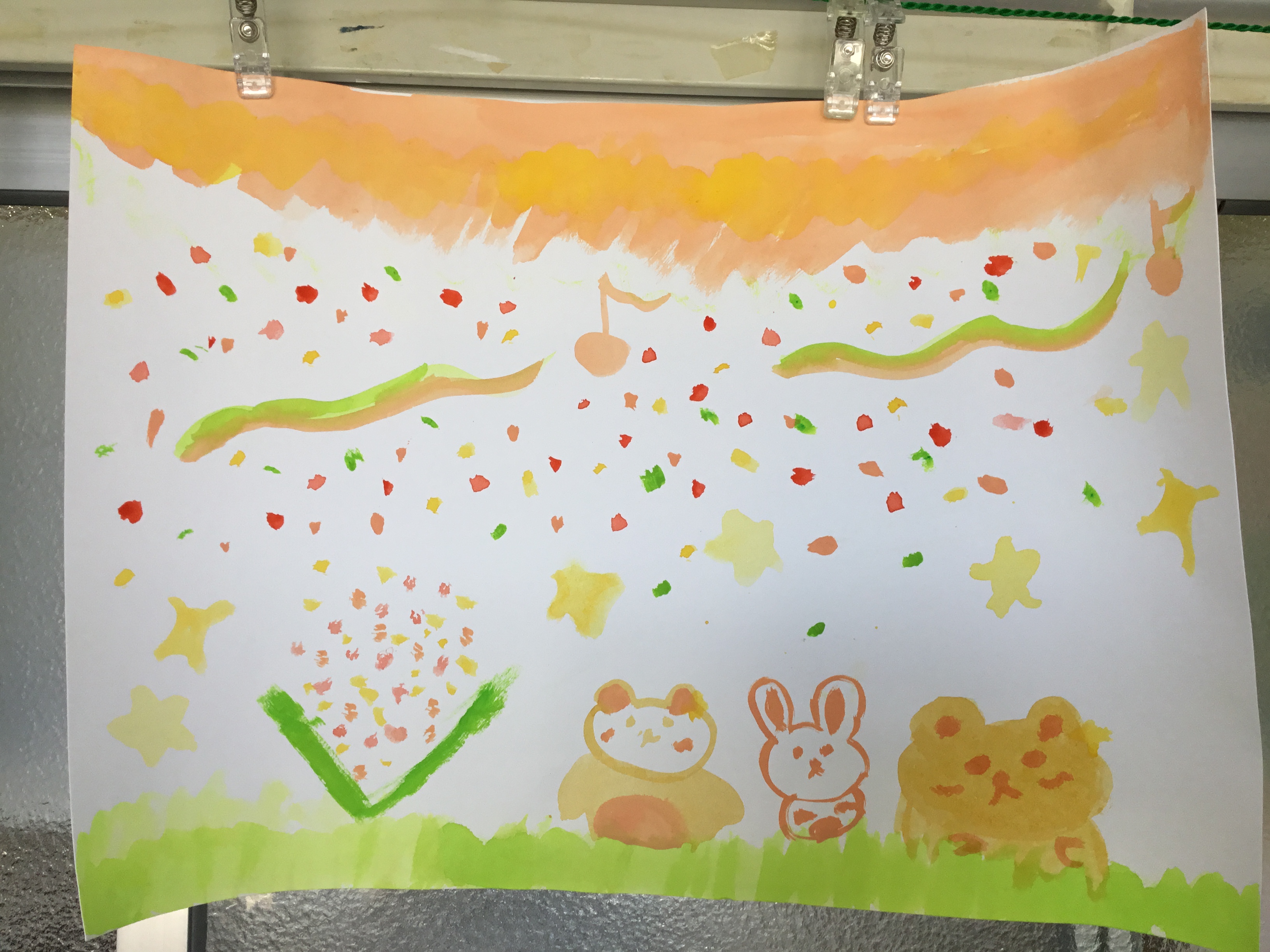 3年生の作品「絵の具と水のハーモニー」①