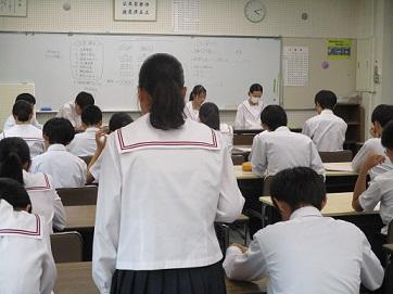 生徒会執行部、各委員会、各学年リーダー会からの活動目標や活動計画についての提案に対する質問や答弁が行われました。