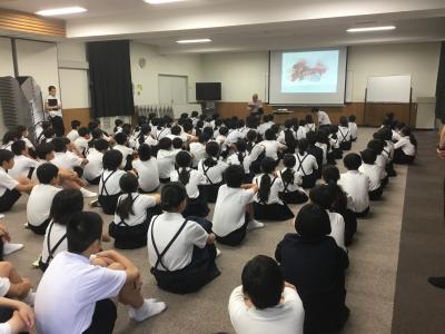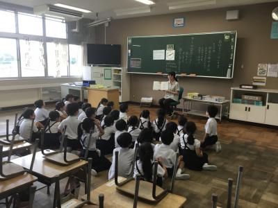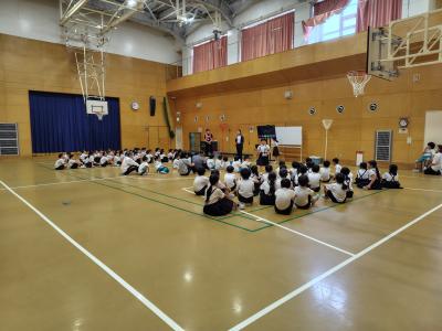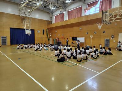 学年全員でお話を聞いたり、クラスごとにお話を聞いたりして