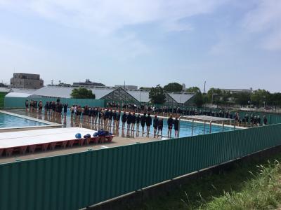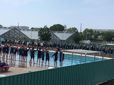6年生が全校のスタートを切ってプールに入りました。