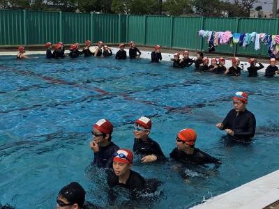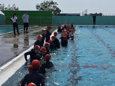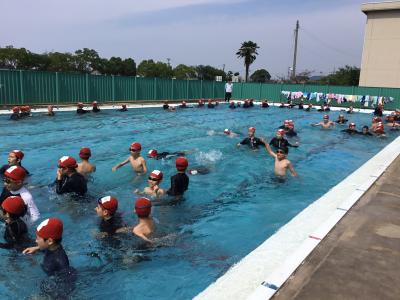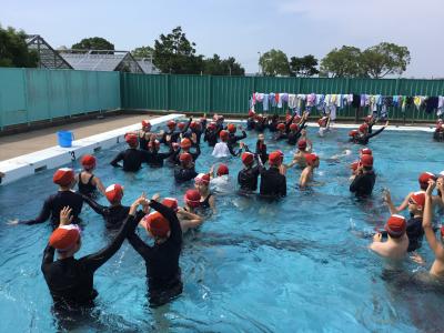 富陽小学校の恒例として、最初にプールに入るのは6年生です。