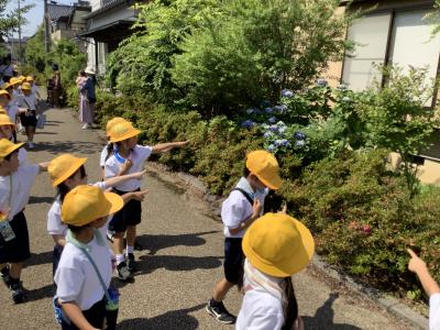 梅雨の合間のよく晴れた一日に、校区にある南部公園まで全員が歩いて往復しました。