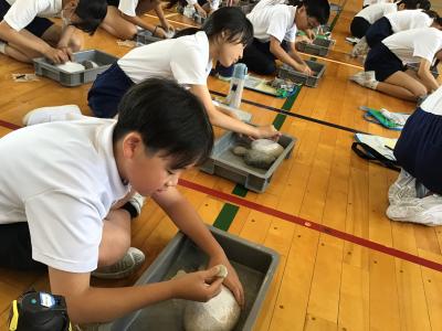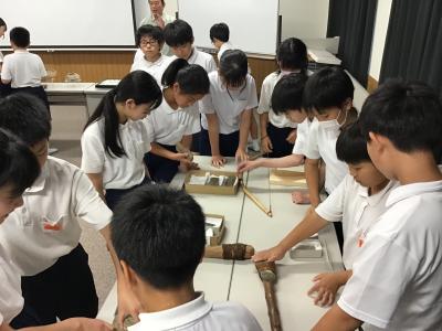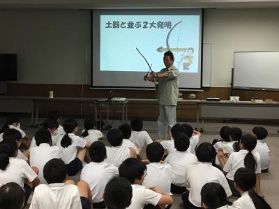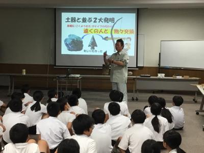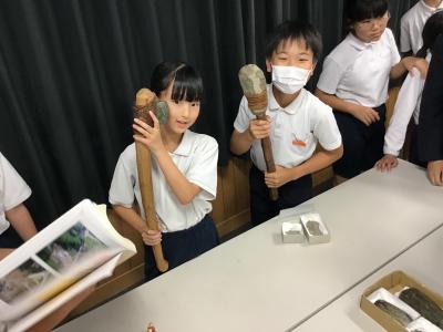 6年生が、歴史学習で考古学出前講座を受けました。