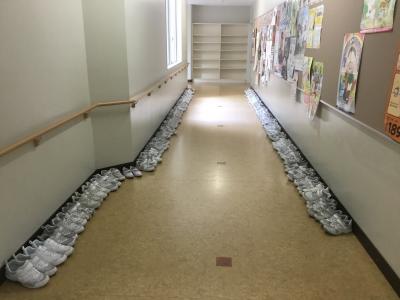 会場の多目的室前には6年生のズックがきれいに並んでいました。さすが6年生です。