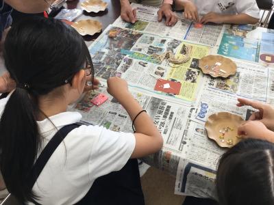 また、体育館では勾玉(まがたま)を作りました。