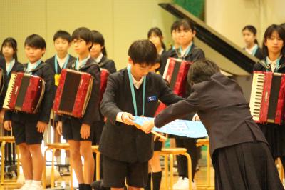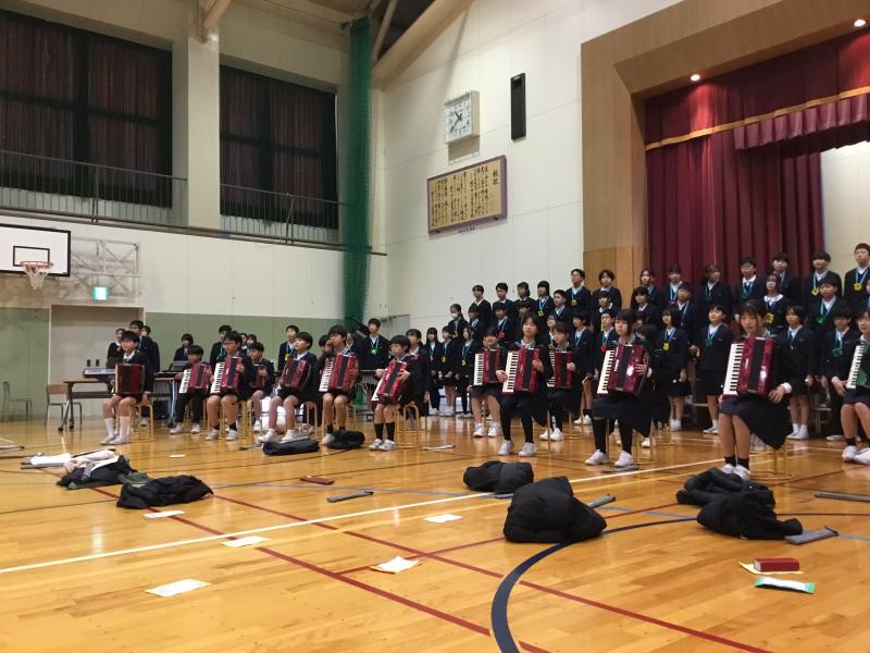 この仲間で、最後の合奏を披露しました。1年生から5年生は、しーんとして見入っていました。