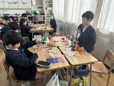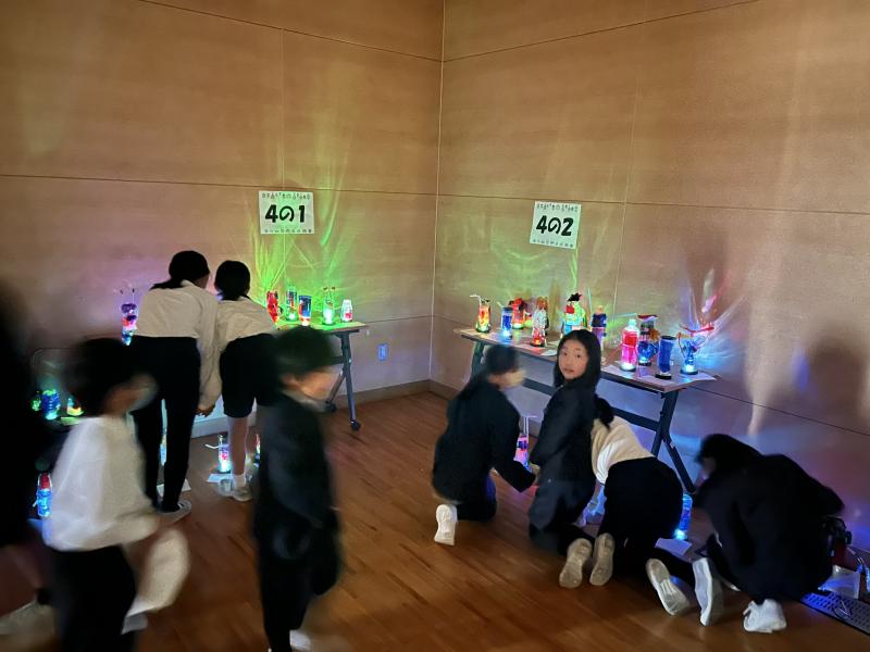 どんな色に光るのか考え、予想し、工夫しながら作りました。