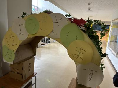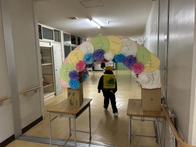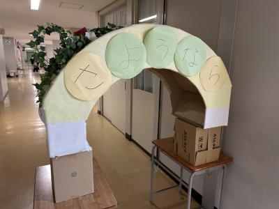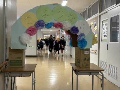 みんながよく通る廊下に「あいさつトンネル」を設置しました。