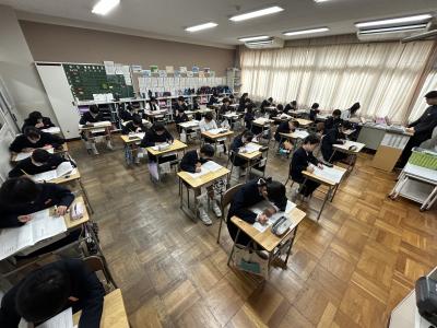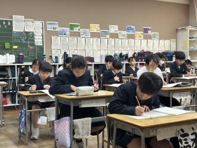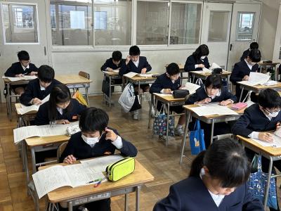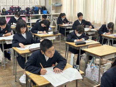 12月3日(火)、5年生の子供たちが、市教育委員会主催の学習到達度調査に取り組みました。