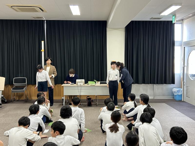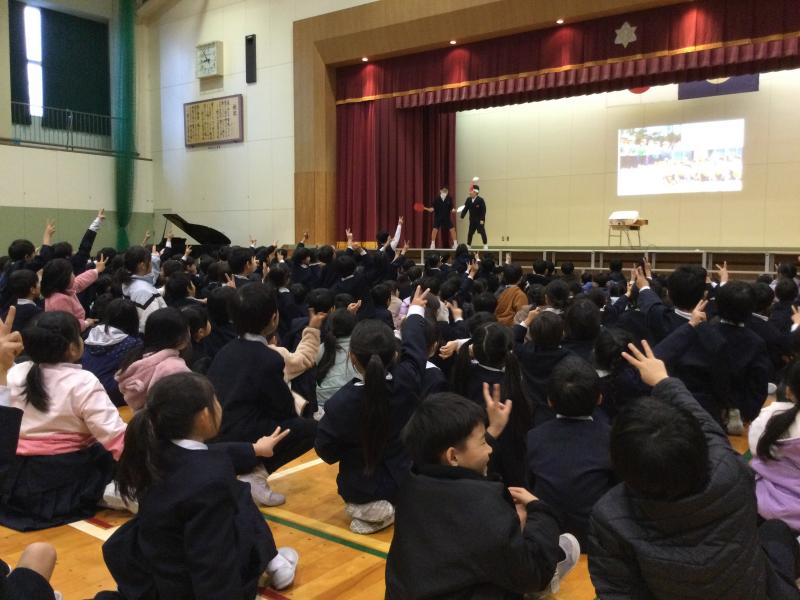 そのあと、児童会集会は子供たちの進行で、委員会やクラブからのお知らせ、学年からの発表を行っています。
