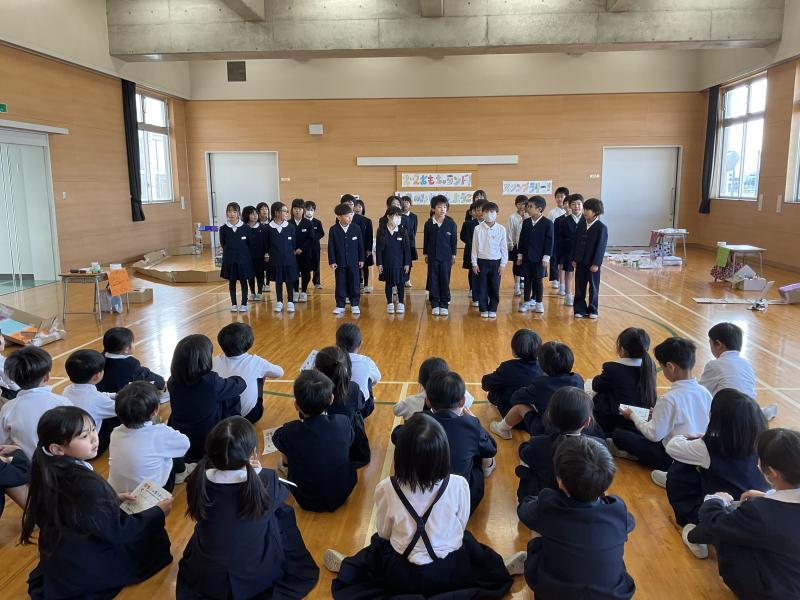 2年生の子供たちがおもちゃランドを開いて、1年生の子供たちを招待します。