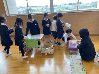 2年生はクラスごとにおもちゃランドをひらき、1年生をクラスごとに招待。